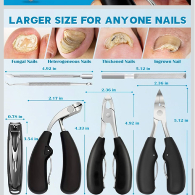 专为中老年人设计的重型脚趾甲钳套装,适用于厚脚趾甲,7合1多功能指甲钳带收集器,专业长柄嵌甲钳,男士适用,指甲修甲足疗套装 $25